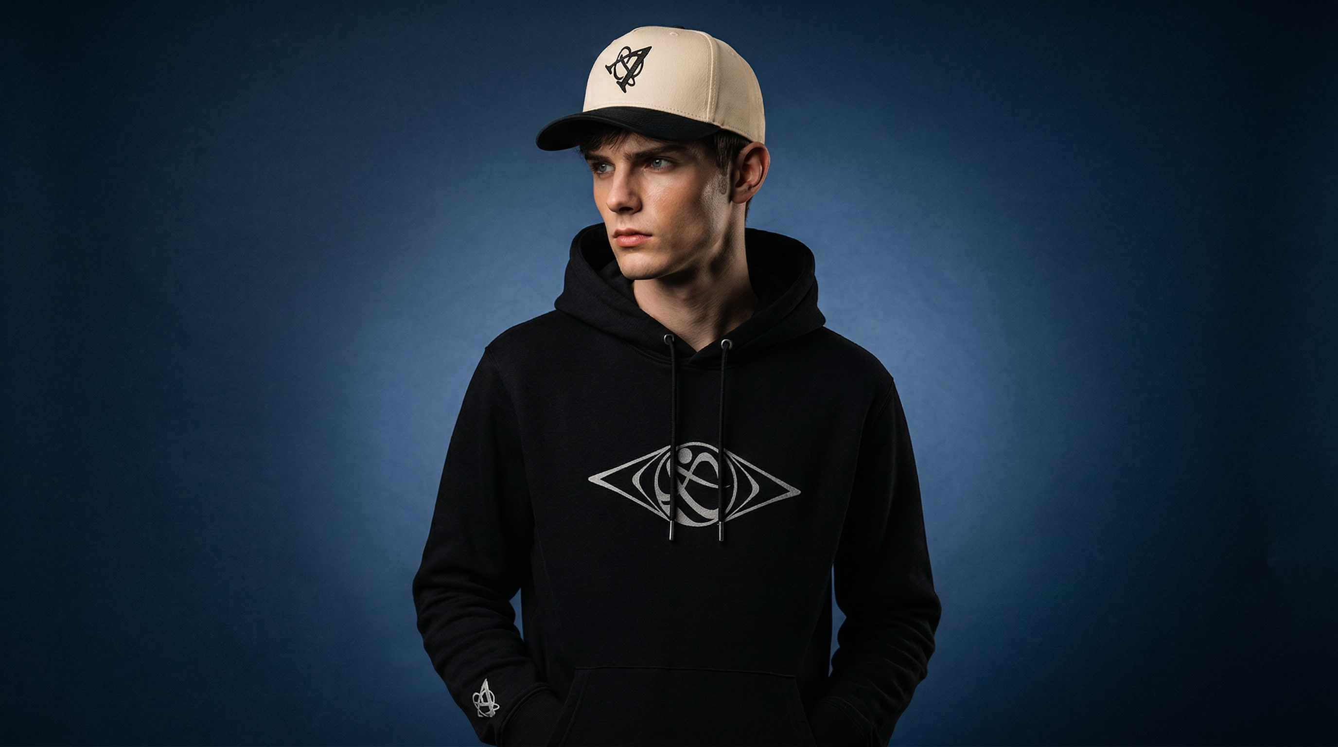 Blue Anyma Embroidered Black Unisex Essential Eco Hoodie